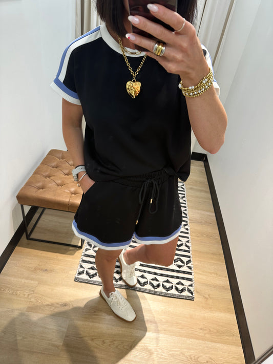 Jenny Stripe Trim Short Set- Black
