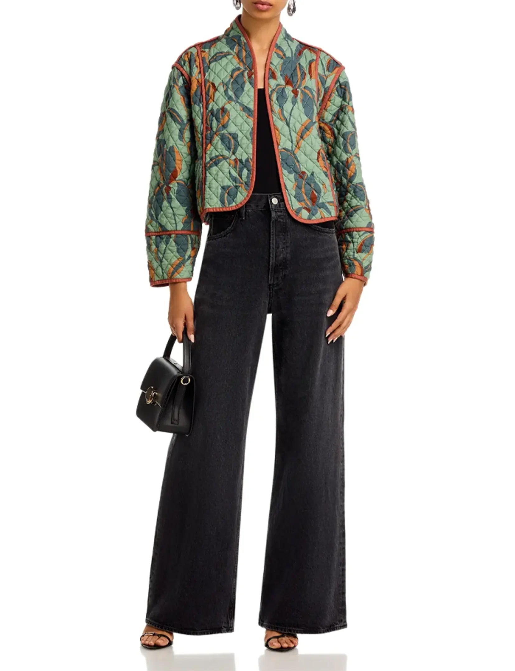 Introducing the Adalynn Jacket, a stylish and functional piece featuring a collarless design and long sleeves. The pullover style makes for convenient wear, while the quilted Chloette Orchid print adds a touch of sophistication. Complete with contrast trim for a unique touch.