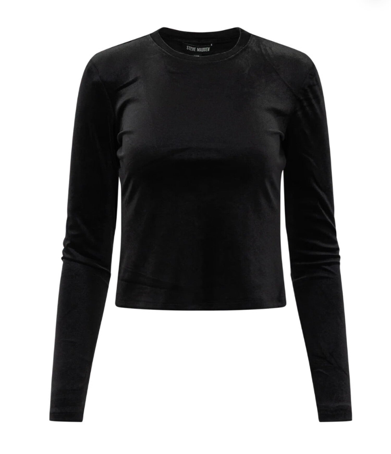 Elevate your wardrobe with the MADILYN STUDDED TOP BLACK. This long-sleeved piece on luxurious velvet fabric, combining texture for a sophisticated statement. Perfect for evening events or upscale outings, it offers an expert blend of edgy detail and refined elegance.