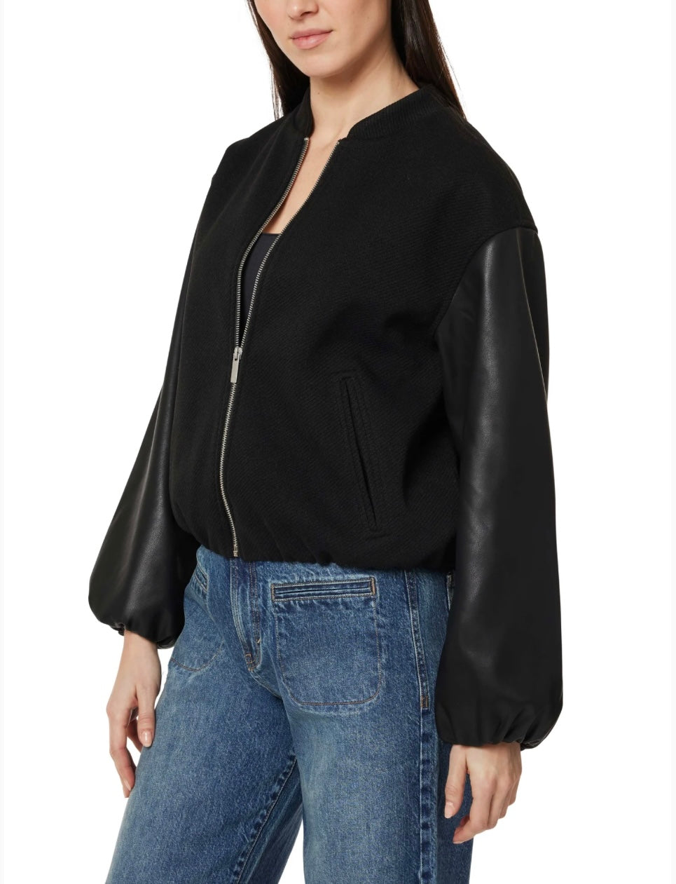 Your new statement layer. This faux leather bubble bomber brings the heat with oversized puffed volume, a high-shine finish, and all the attitude!