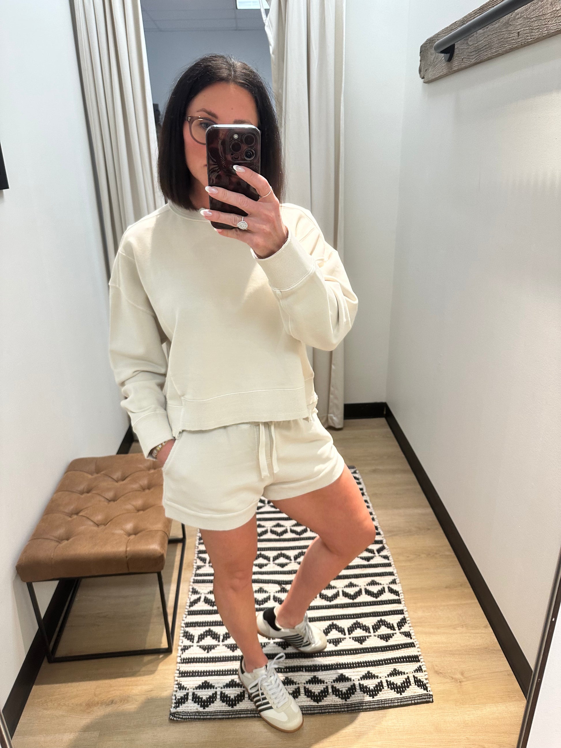 The Stoney Short is designed for comfort and functionality, featuring an elastic drawstring waist for adjustable fit and practical pockets for convenience. This loungewear compliments the Stoney sweatshirt, creating a cohesive and relaxed outfit ideal for leisure activities.