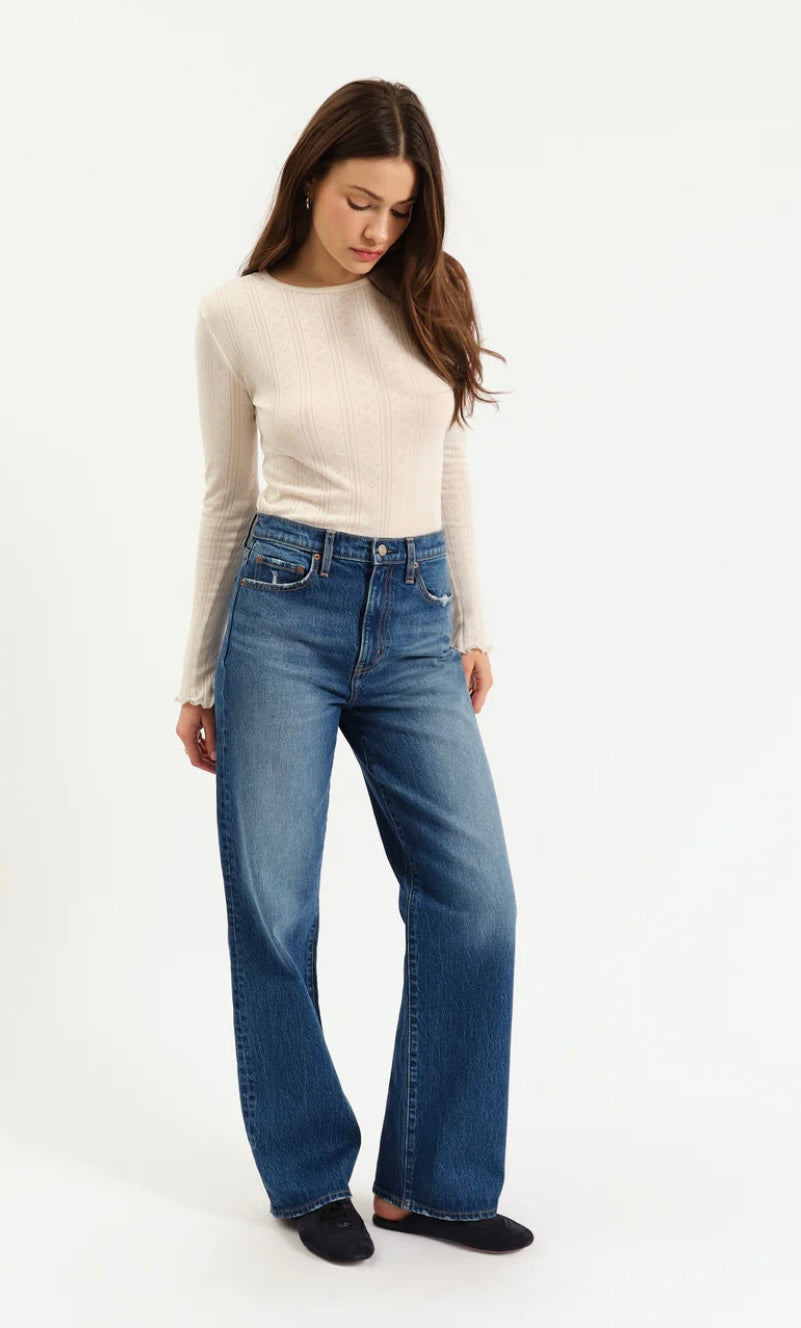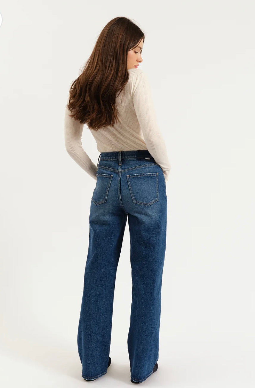 The City Straight in Bright Blue is a high rise straight leg jean in a timeless dark blue wash. Gently frayed hems and straight lines make this a versatile jean for any occasion. Constructed from our Tough Love fabric, this pair is mostly rigid but yields to your body in all the right ways.